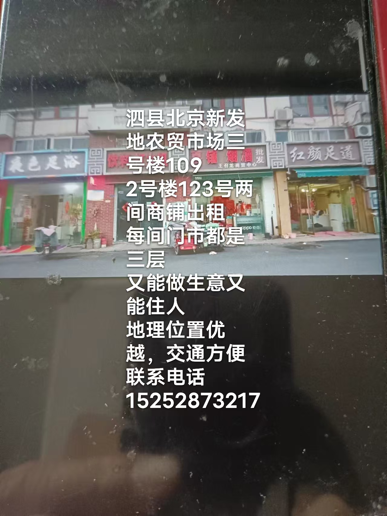 2号楼123号两间商铺出租,每间门市都是三层,又能做生意又能住人,地理位置优越,交通方便,联系电话15252873217