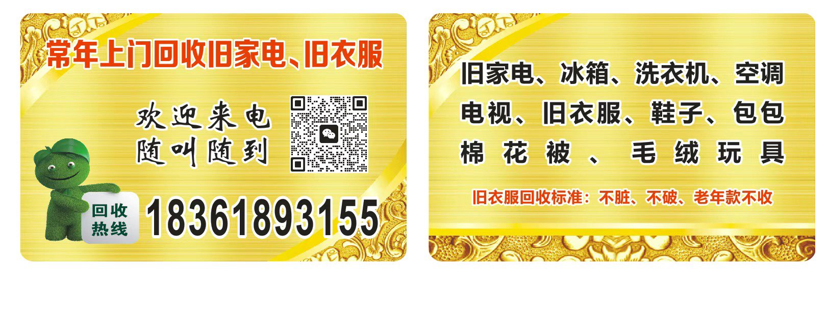 上门回收旧衣服旧家电欢迎来电随叫随到