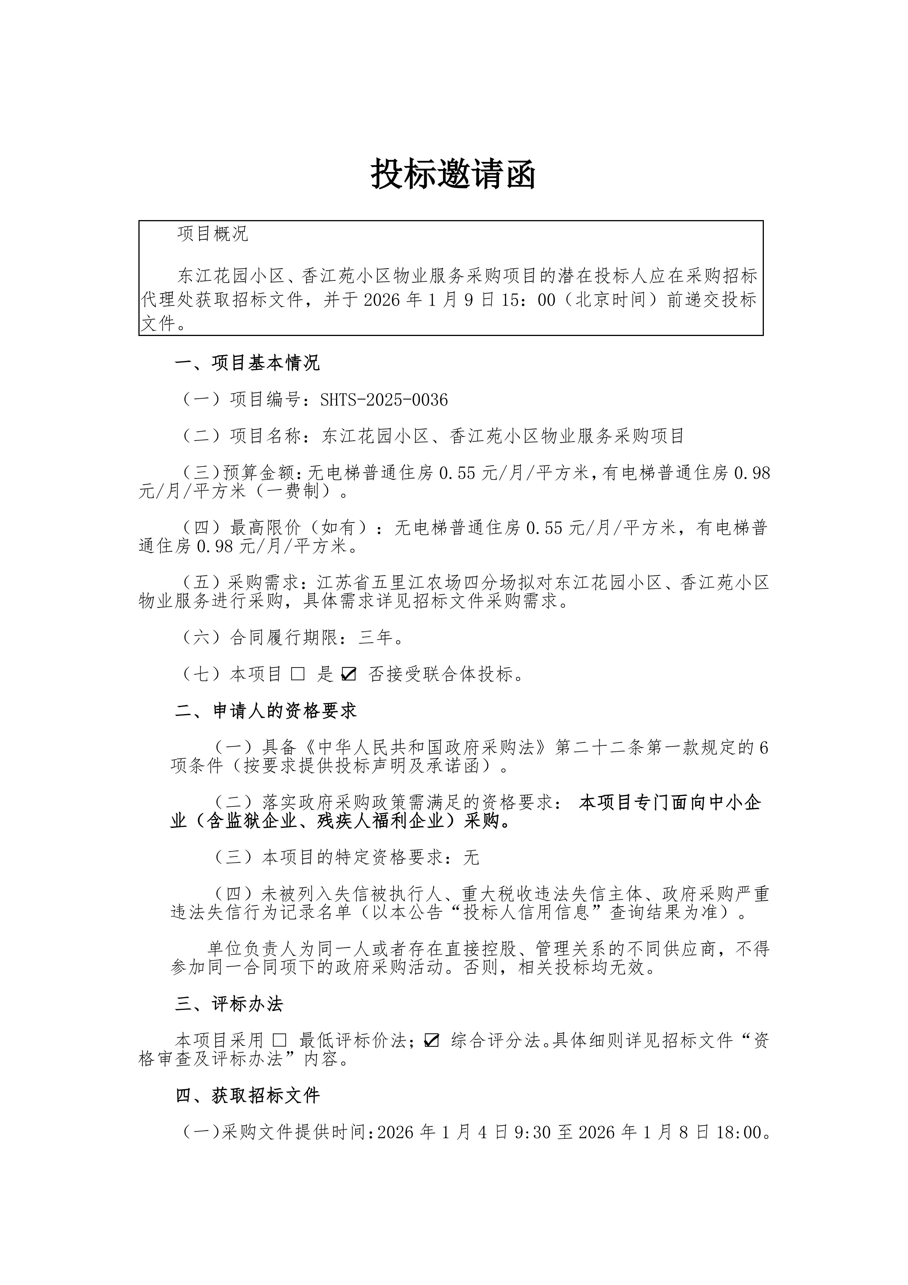东江花园小区、香江苑小区物业服务采购项目招标公告