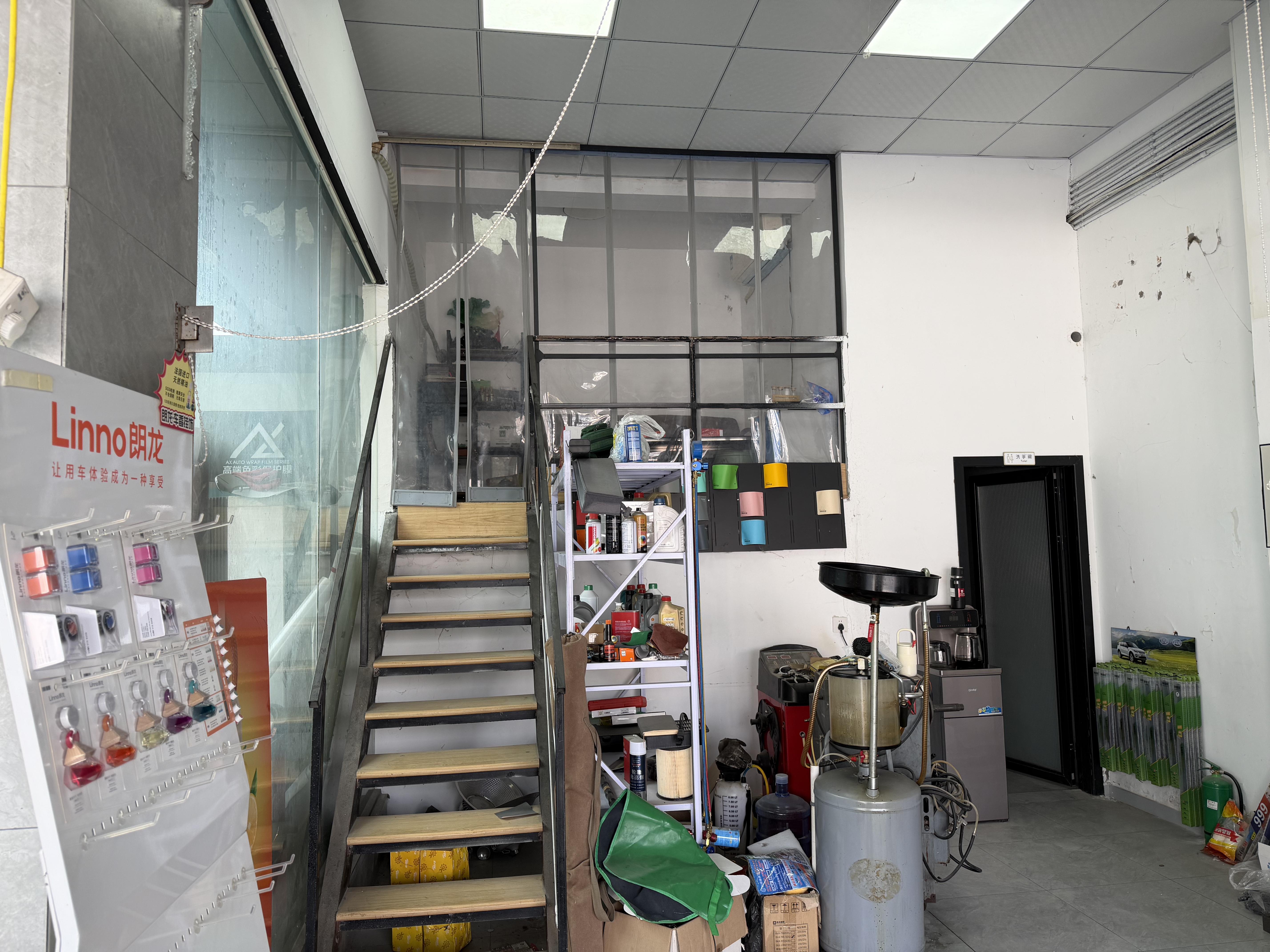 本店面积 105平方,是成熟汽车美容贴膜店。店内设备齐全(贴膜工位、洗车设备、美容工具等一应俱全),客源稳定,周边车流大、停车方便,无行业竞争压力。