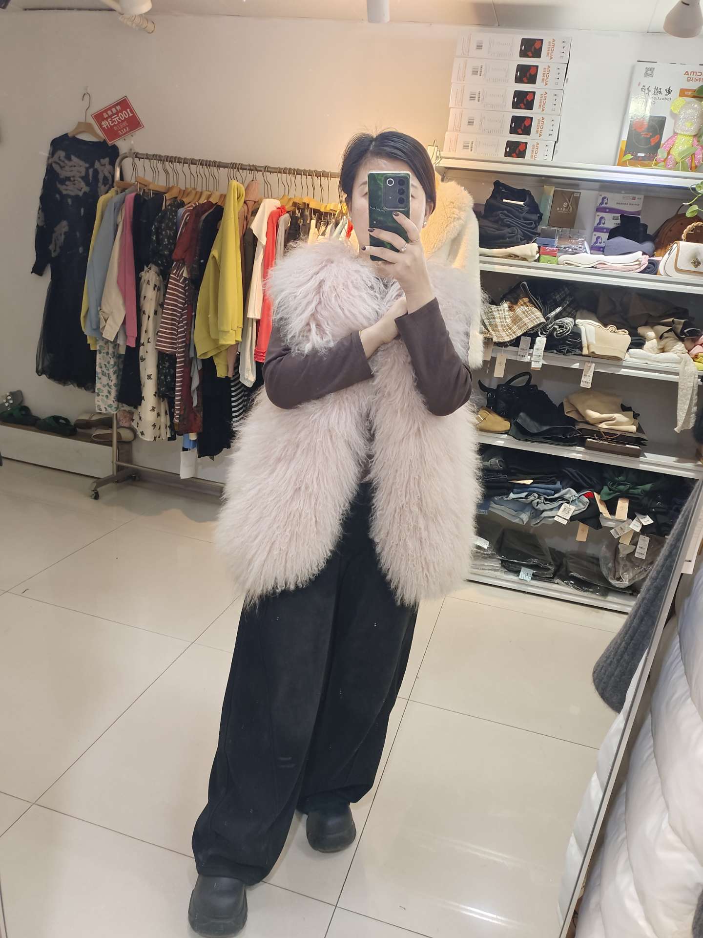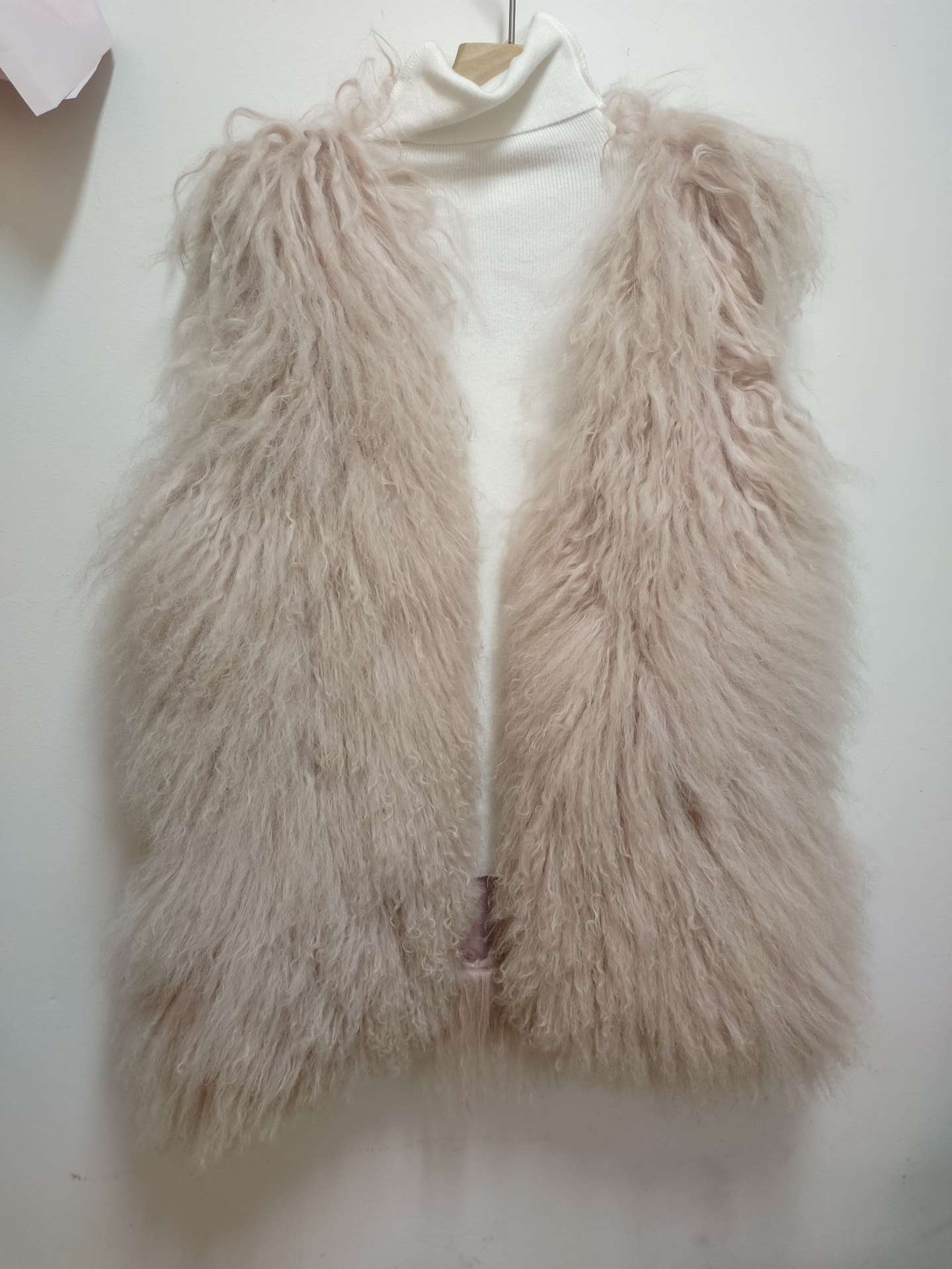 1-粉色是滩羊毛的皮草马甲,中长款,很厚实,就是回头率会高吧120出!原价500以上!