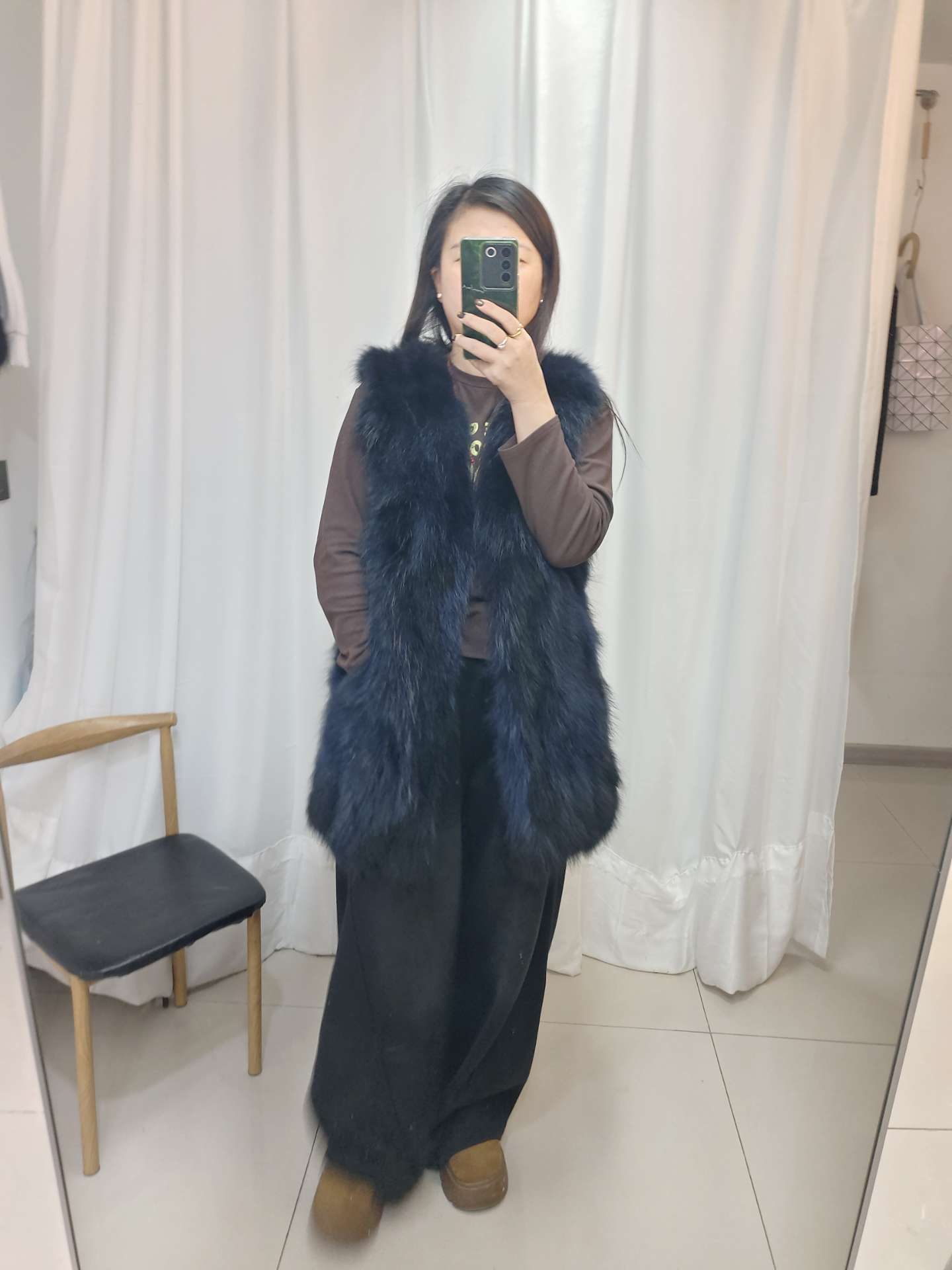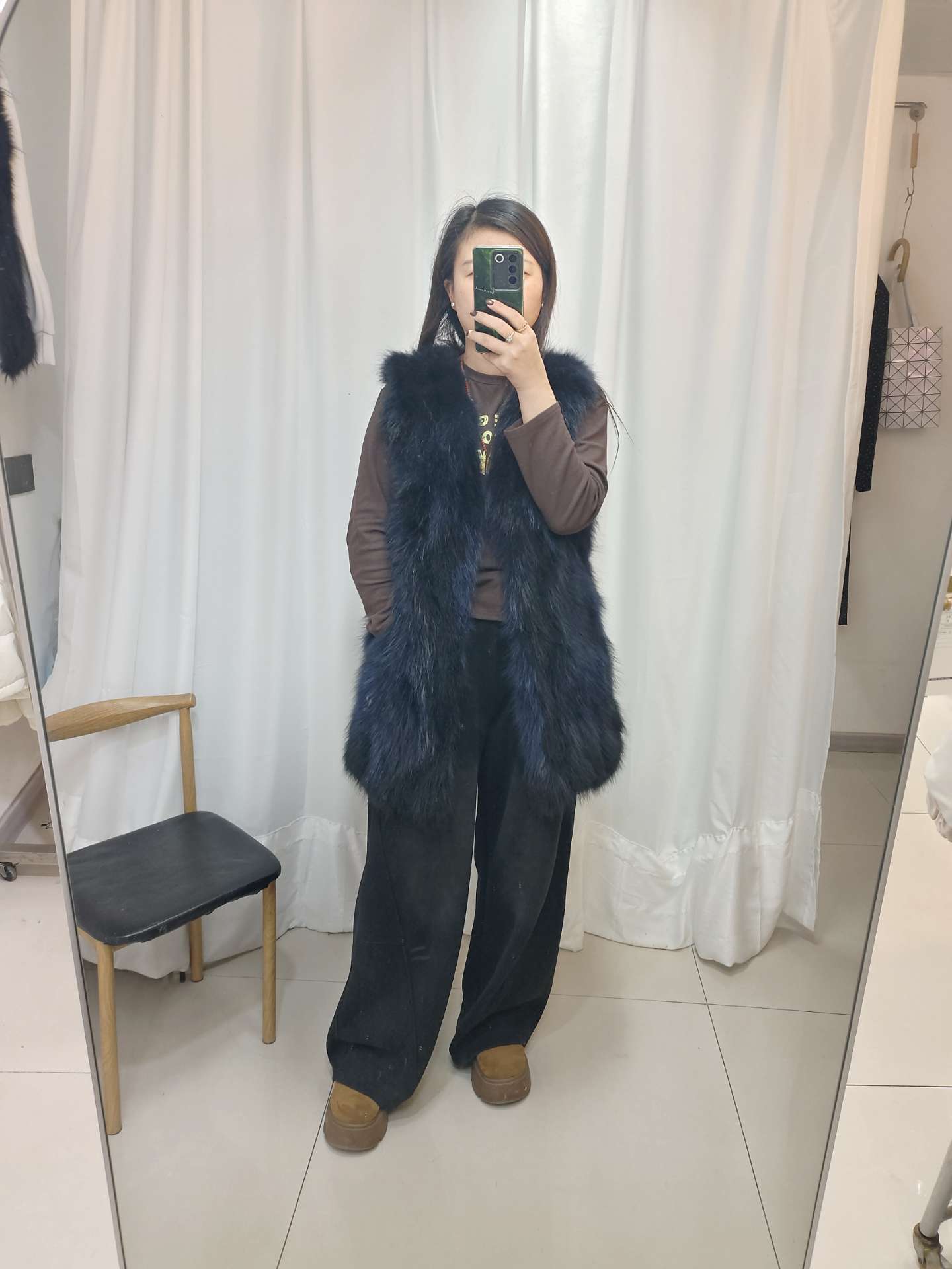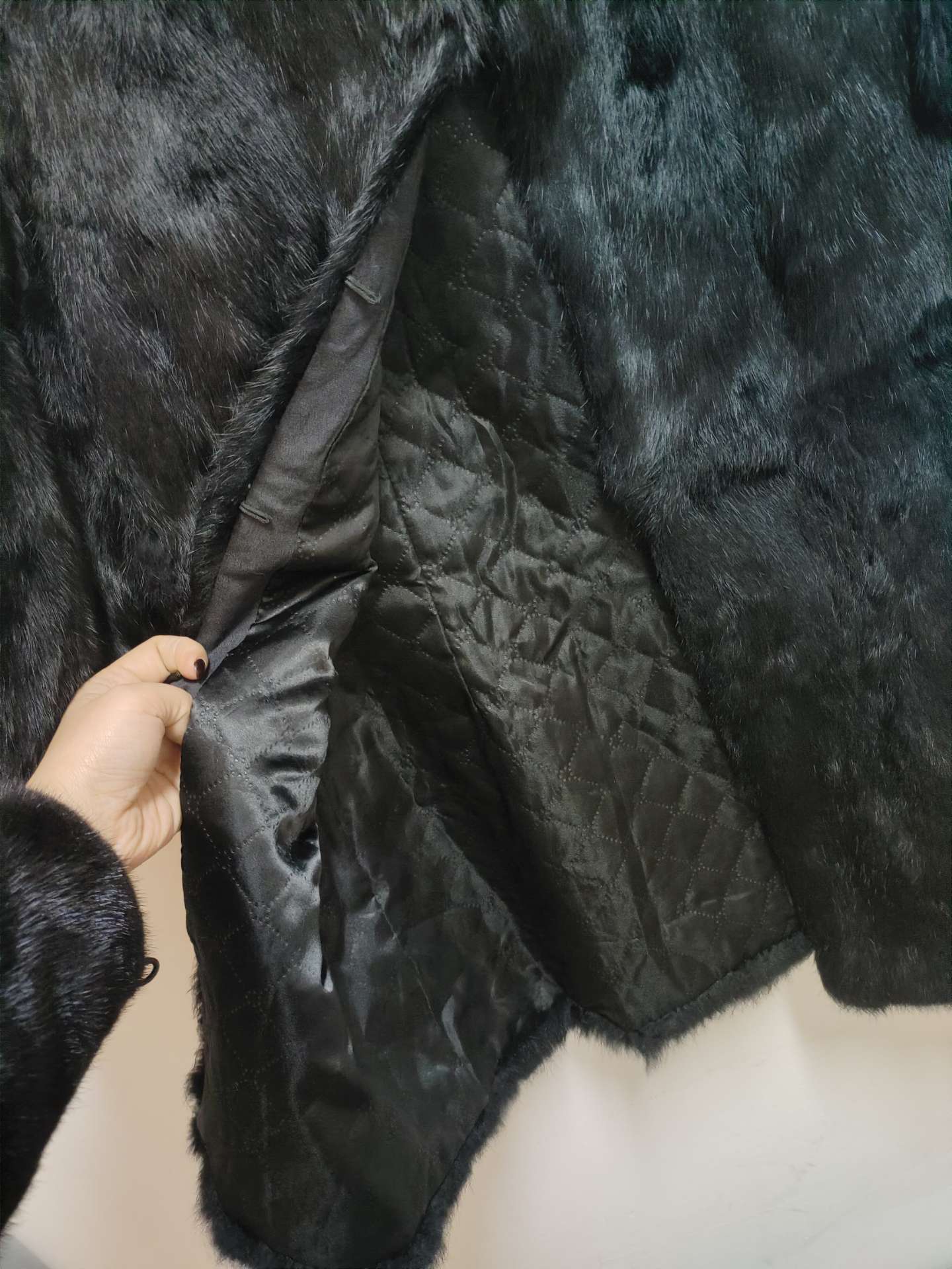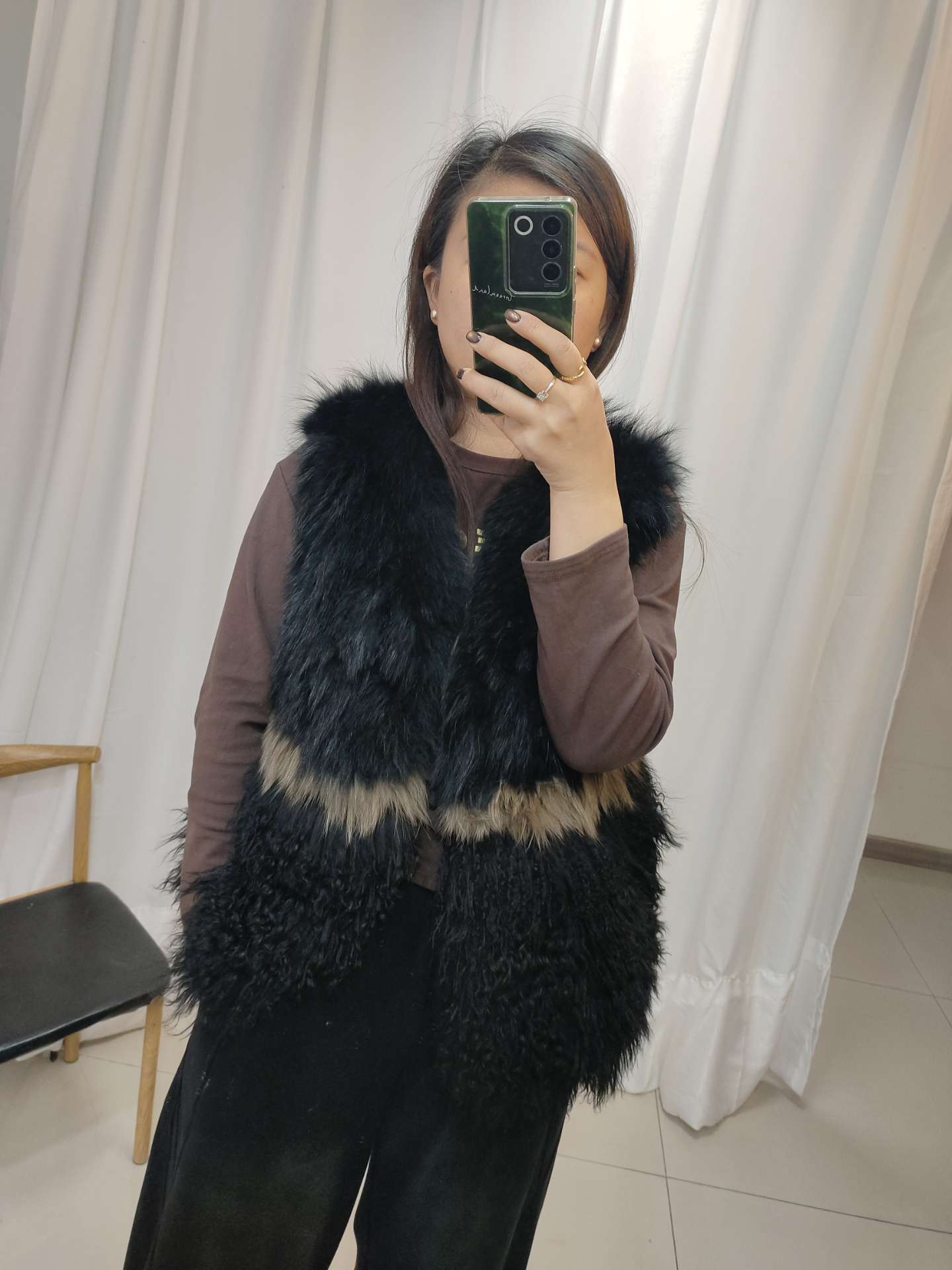 2-貉子毛拼滩羊毛短款厚实黑色马甲,。拿到手就知道了,真的很厚实,因为领标戳脖子被我拆了,然后领子那里就拆坏了,但是穿上又看不到,也不影响穿,100出。