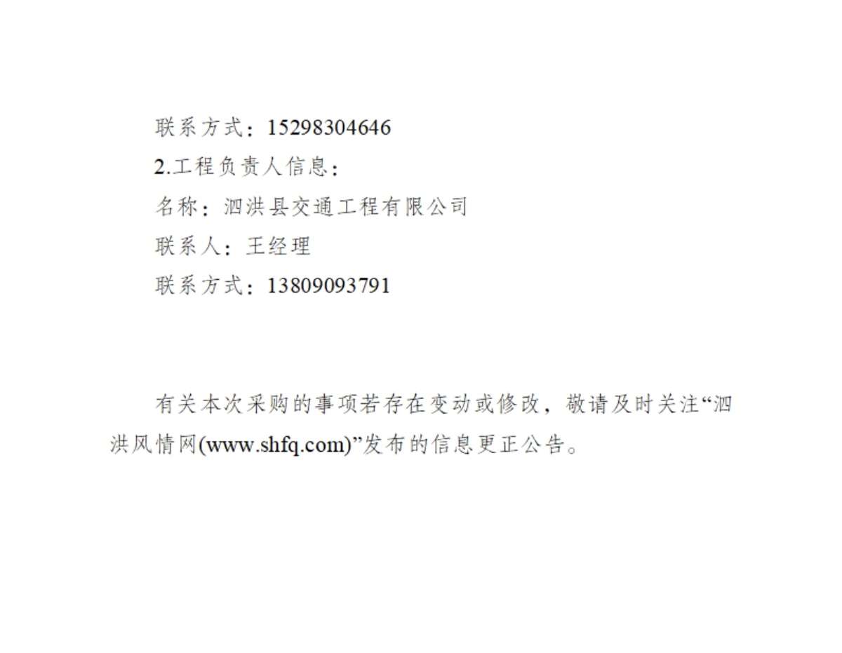 泗洪县交通工程有限公司土方运输(二次)采购项目询价公告