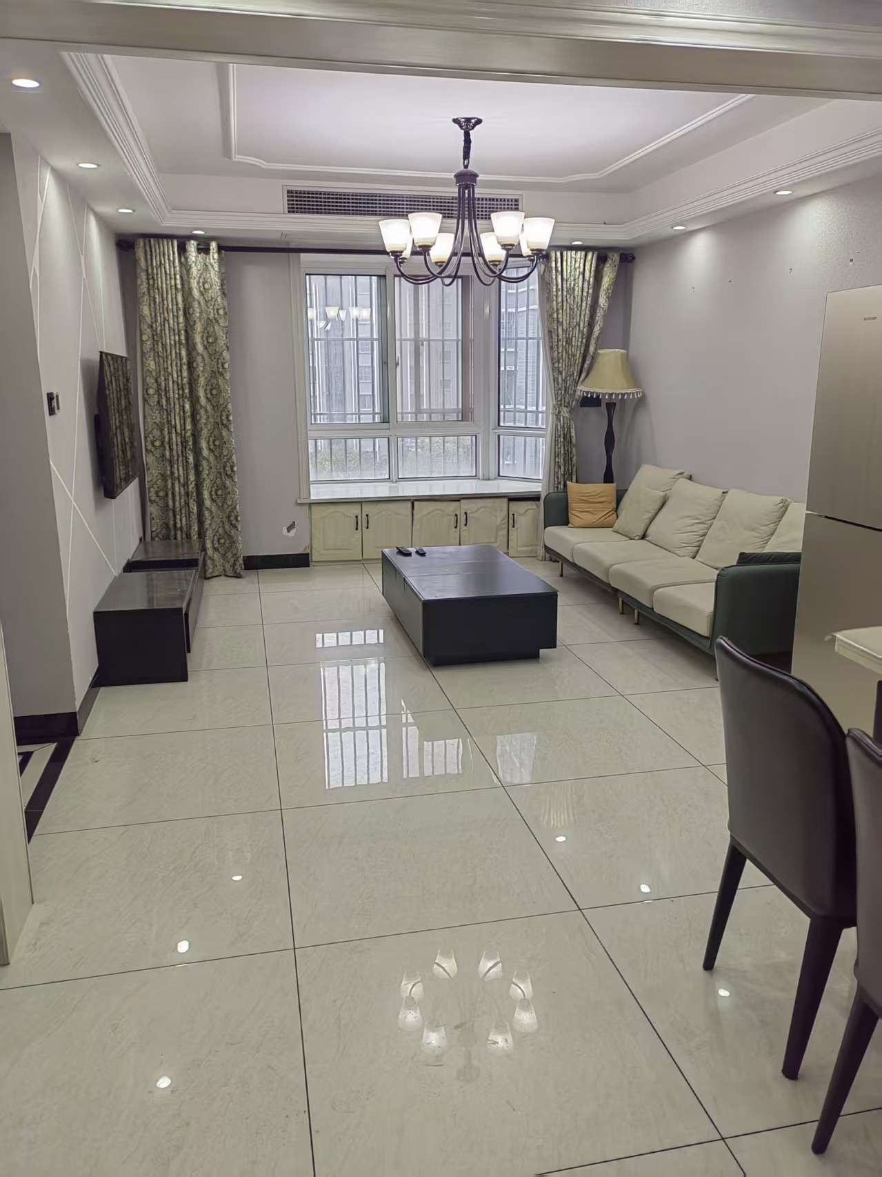 出租:富园雅郡,116平方,电梯4楼,配套齐全,精装修,三室两厅一卫,报价17000元一年
