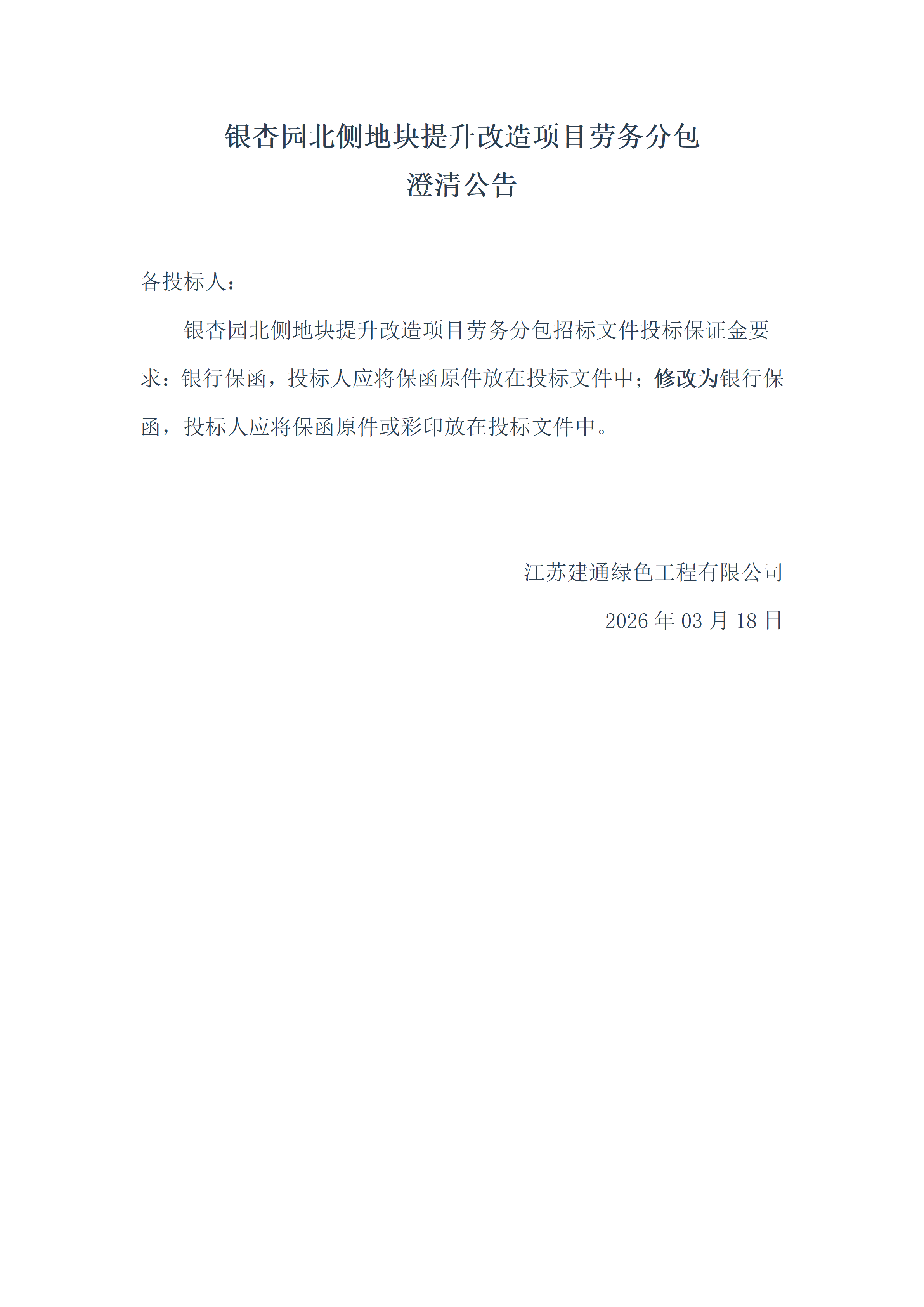银杏园北侧地块提升改造项目劳务分包 澄清公告