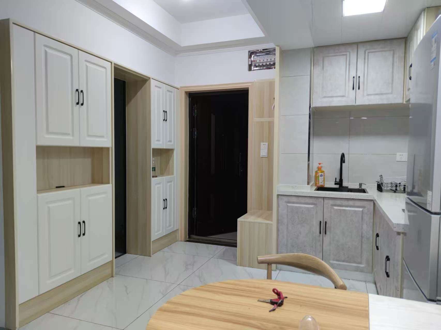 单身公寓在三楼,有电梯,包物业,水电齐全,可做饭,有阳光。地理位置优越。门口早晚就像步行街,购物出行非常方便。