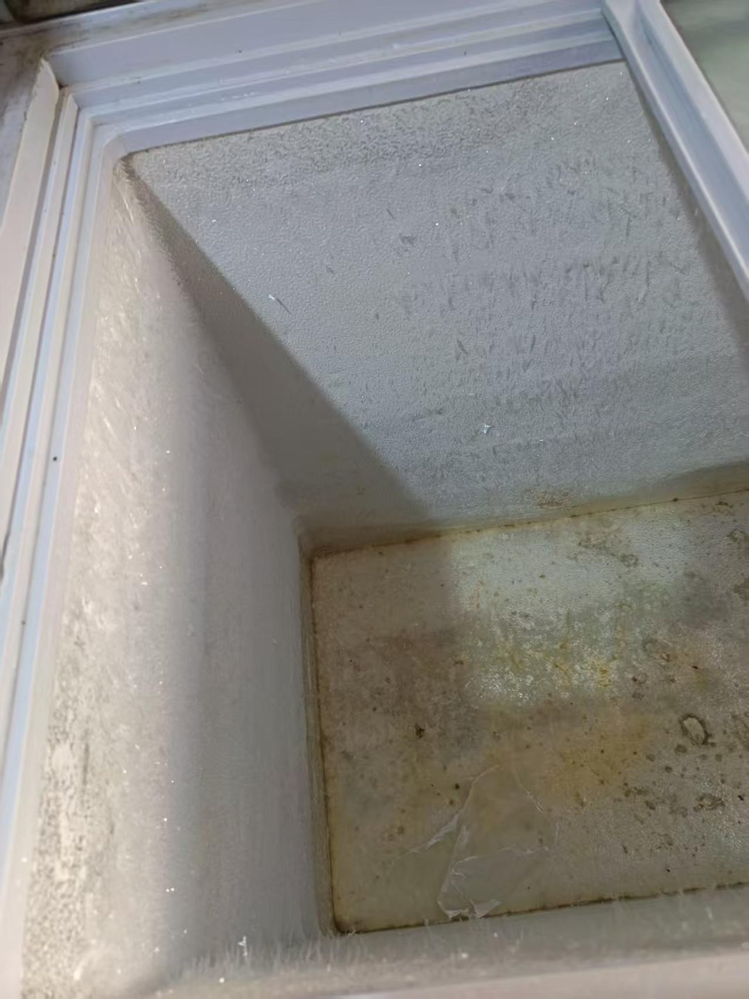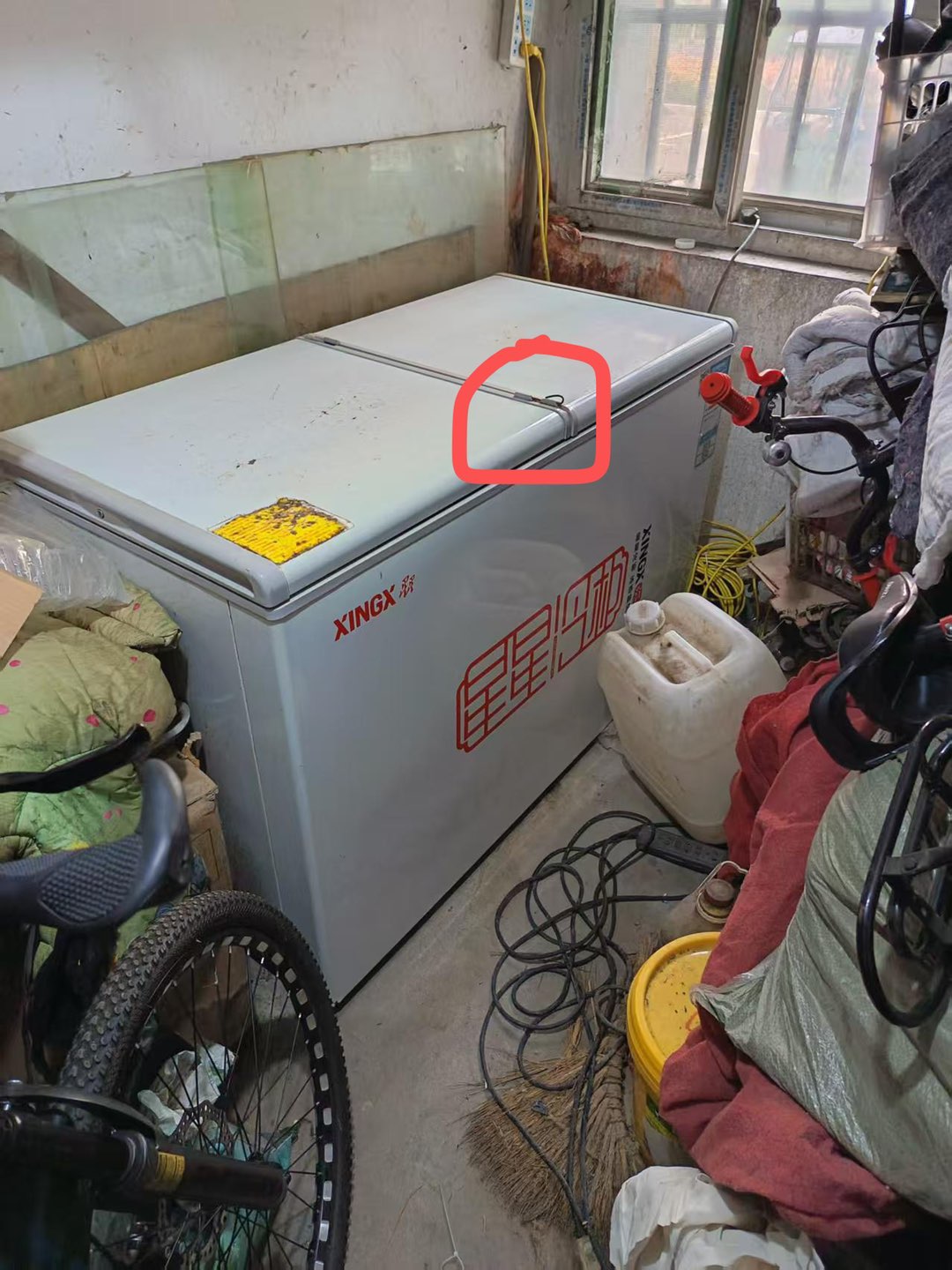 图片看着有点脏,冰柜擦擦,打冷效果好,都正常用,圈圈那里插销坏了。收拾车库冰柜没地方放!自提价格200元!