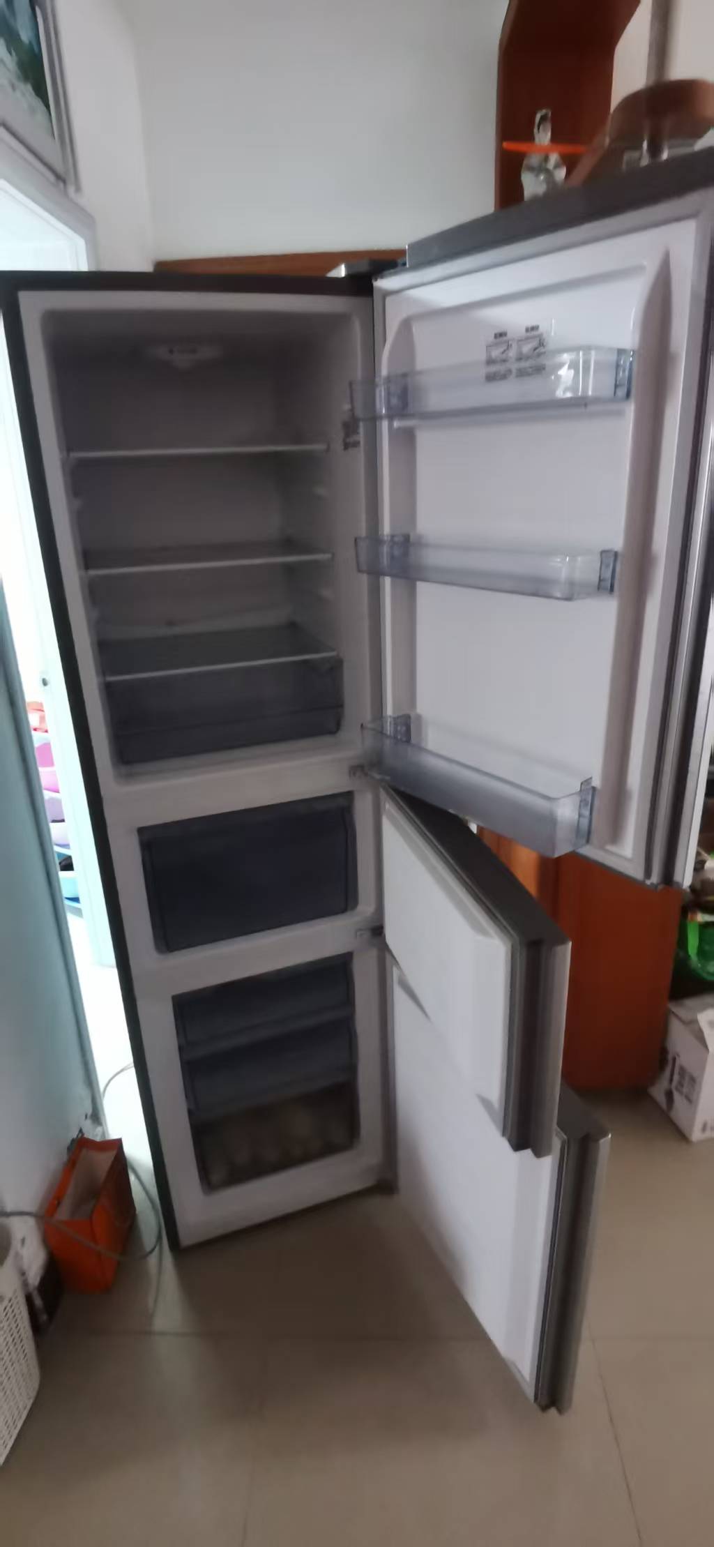 容声三开门冰箱219升,8成新左右,正常使用无拆修,制冷效果好,空间大,冷藏冷冻分区,实物看图吧。500元不议价,泗洪附近可送货上门,需要的联系。非诚勿扰!