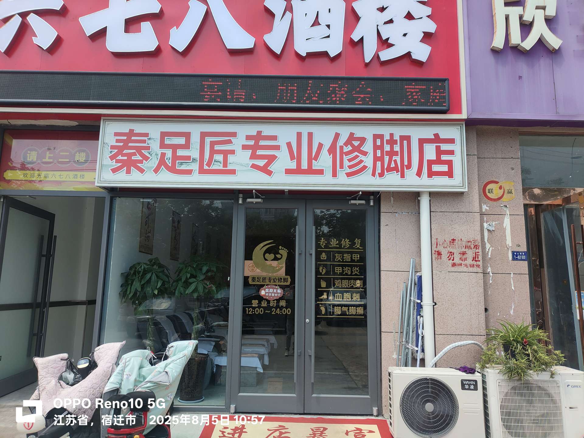 专业修脚店,大厅放8张椅子,有两个房间,卫生间