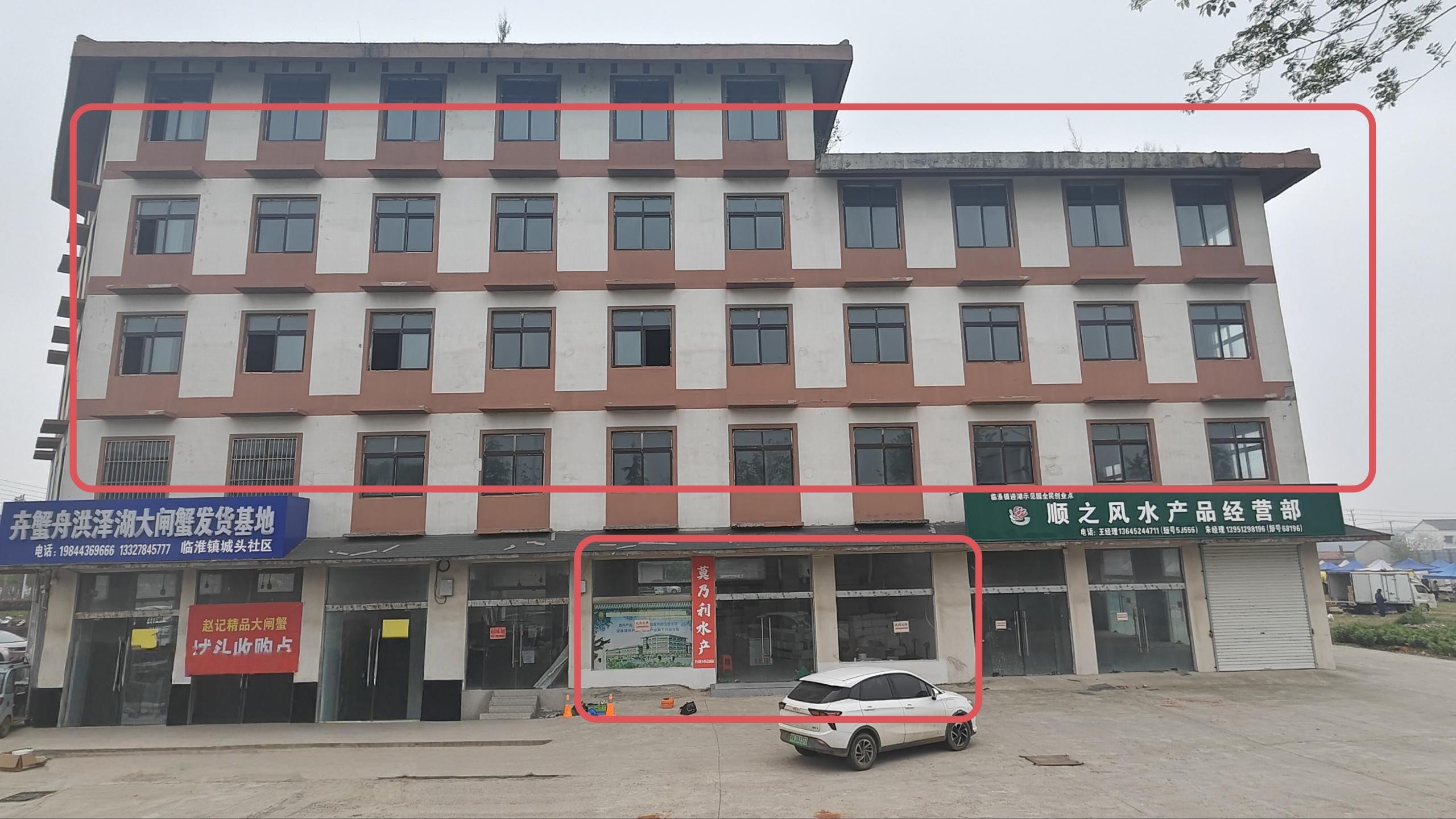 临淮镇通湖大道,镇政府东南侧约 整栋一楼 3 间门市 170㎡,2-5 层各700㎡,可商用可办公,厂房仓库都行的 出租出售都行