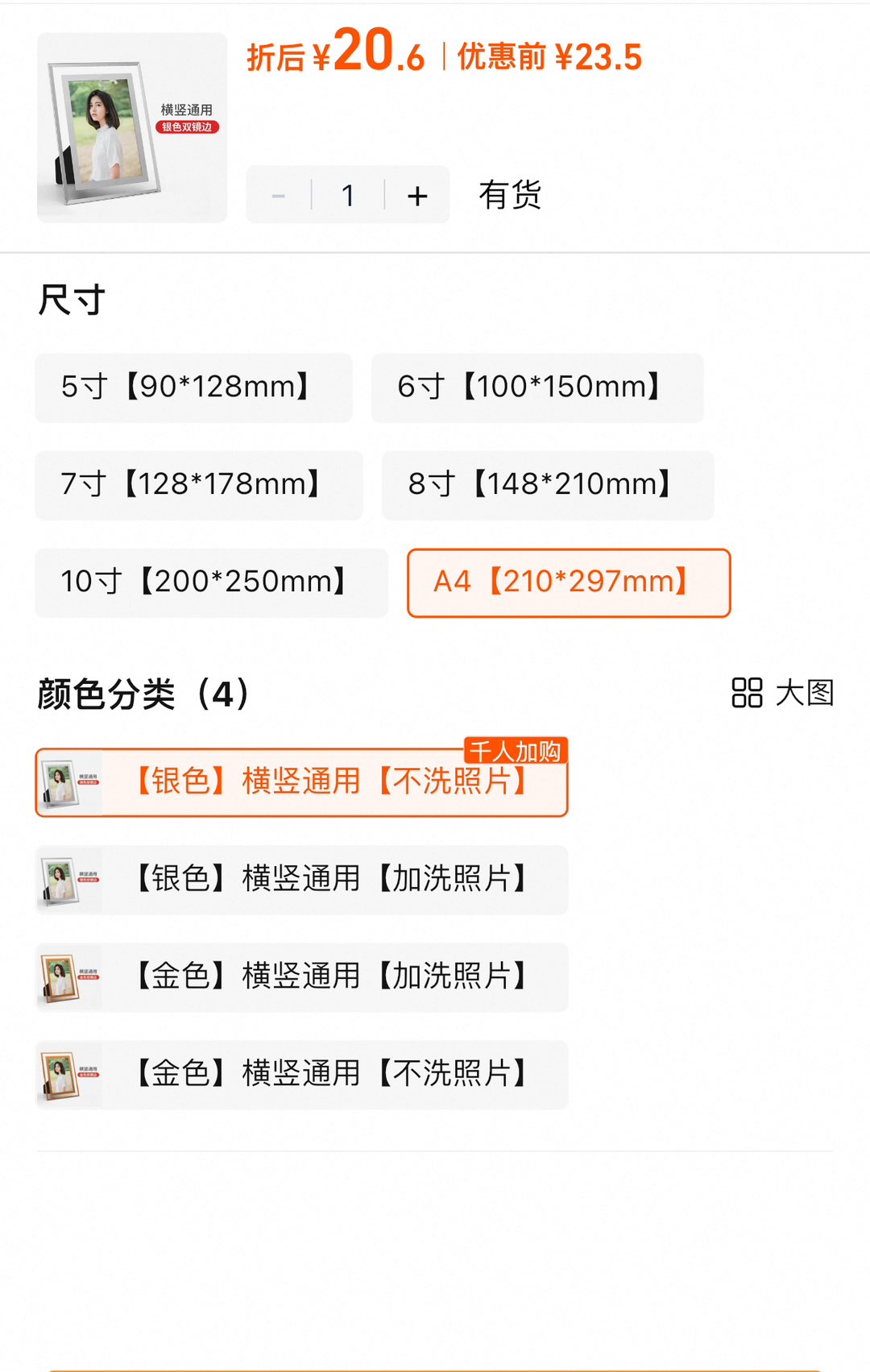 A4水晶相框摆台/横竖都能用